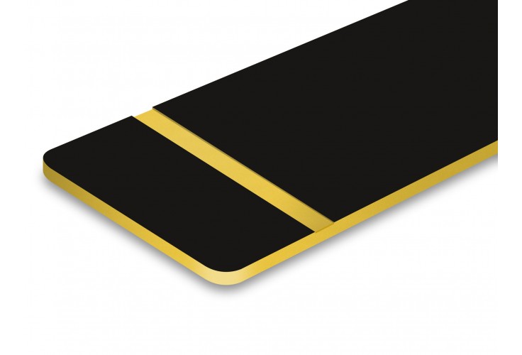 - Couleur du fond or brossé et texte en noir