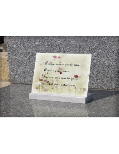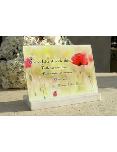 Avec notre plaque en verre vous pouvez réaliser votre propre plaque funéraire photographique, unique et contemporaine entièrement personnalisée en couleur.