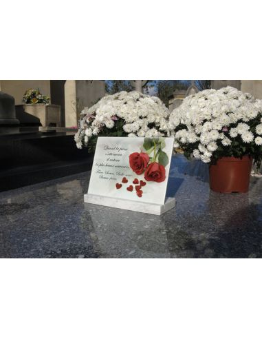 Nous créons, à partir des décors, des textes et photos de vos clients, des plaques funéraires uniques avec différent thème